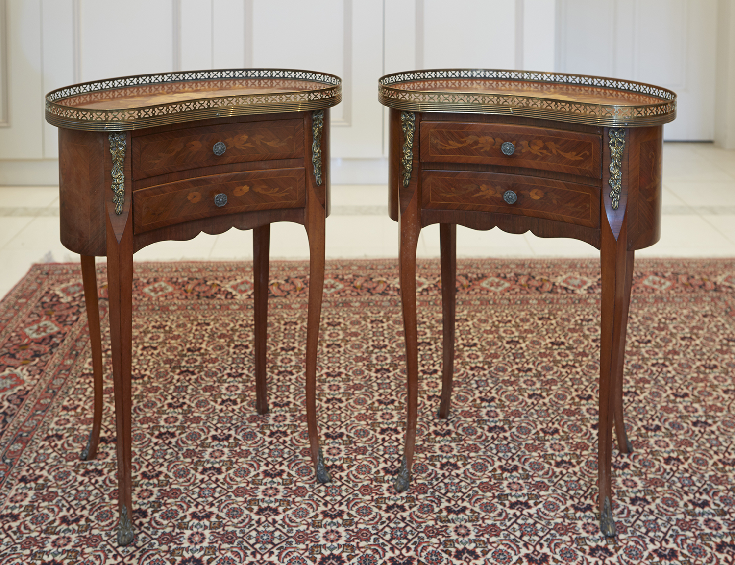 A PAIR OF LOUIS XV STYLE PARQUETRY BEDSIDE TABLES, 20TH CENTURY
