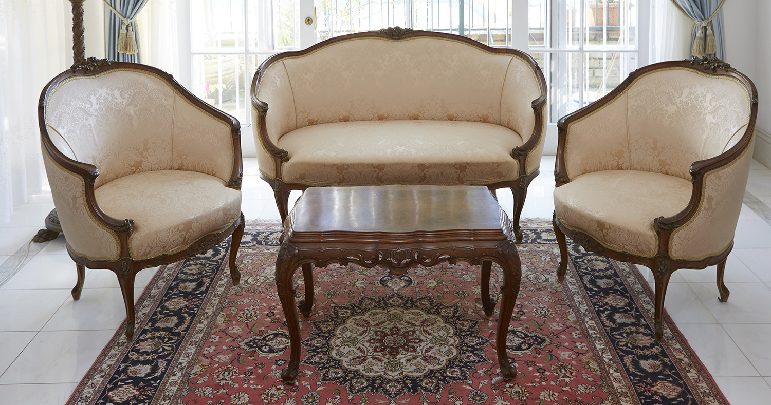 Comprising two-seater sofa, pair of chairs and a table (4)