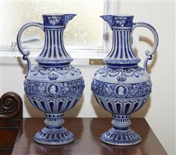 A PAIR OF GERMAN WESTERWALD STONEWARE EWERS, LATE 19TH CENTURY