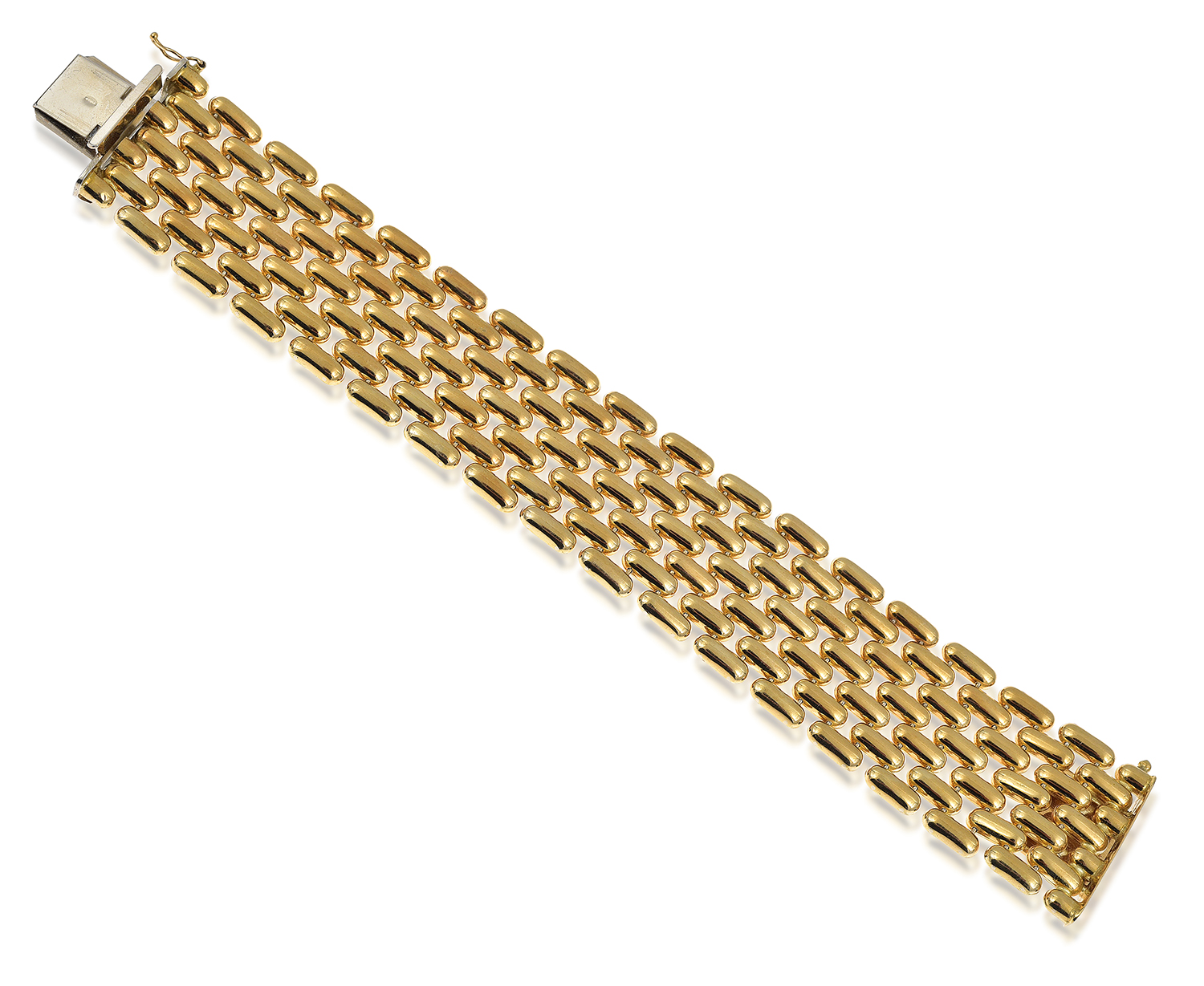 The wide pierced brick link bracelet modelled in 18ct gold, total length 195mm.