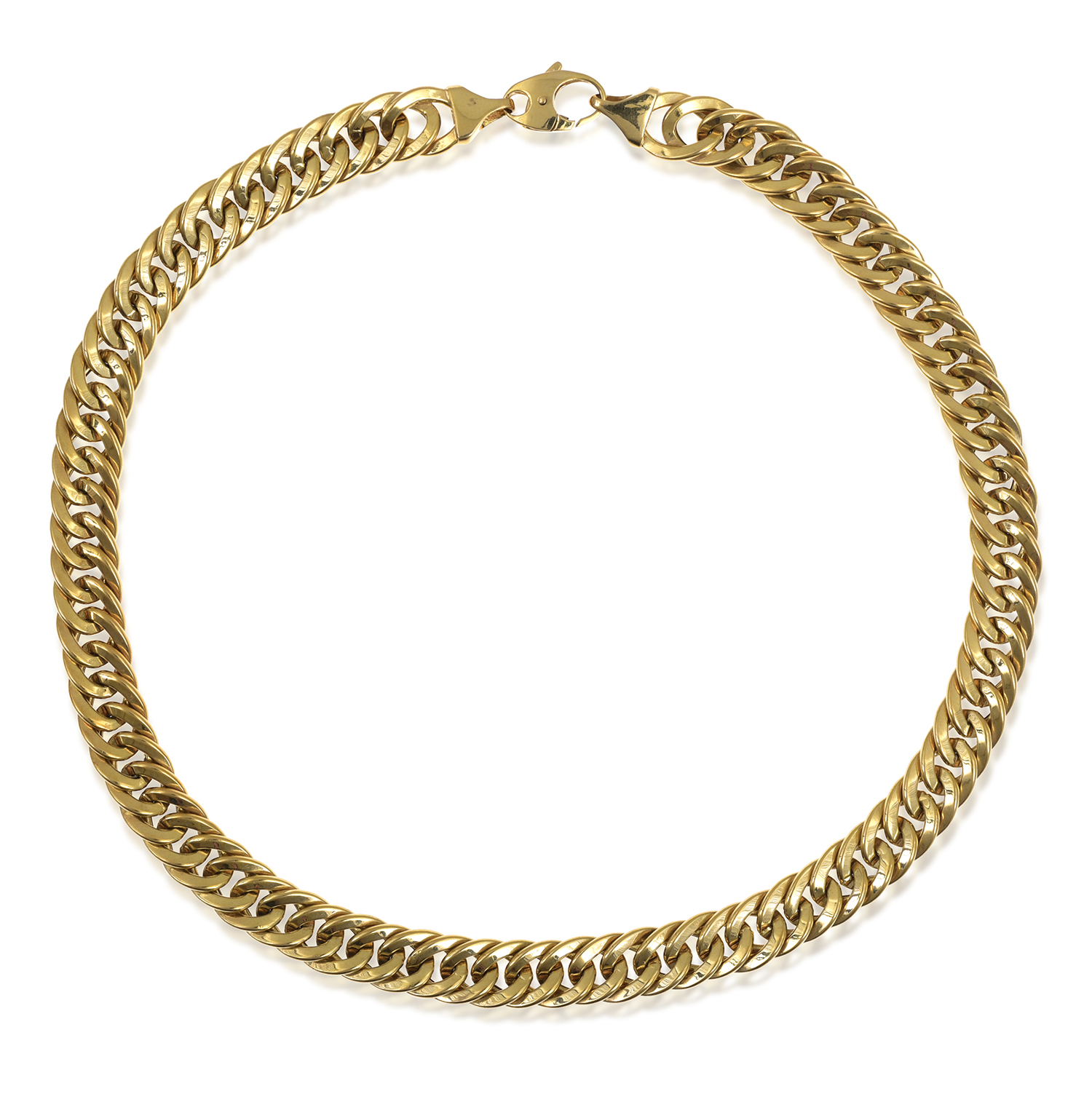 The fancy flat curb link necklace mounted in 18ct gold, total length 400mm.