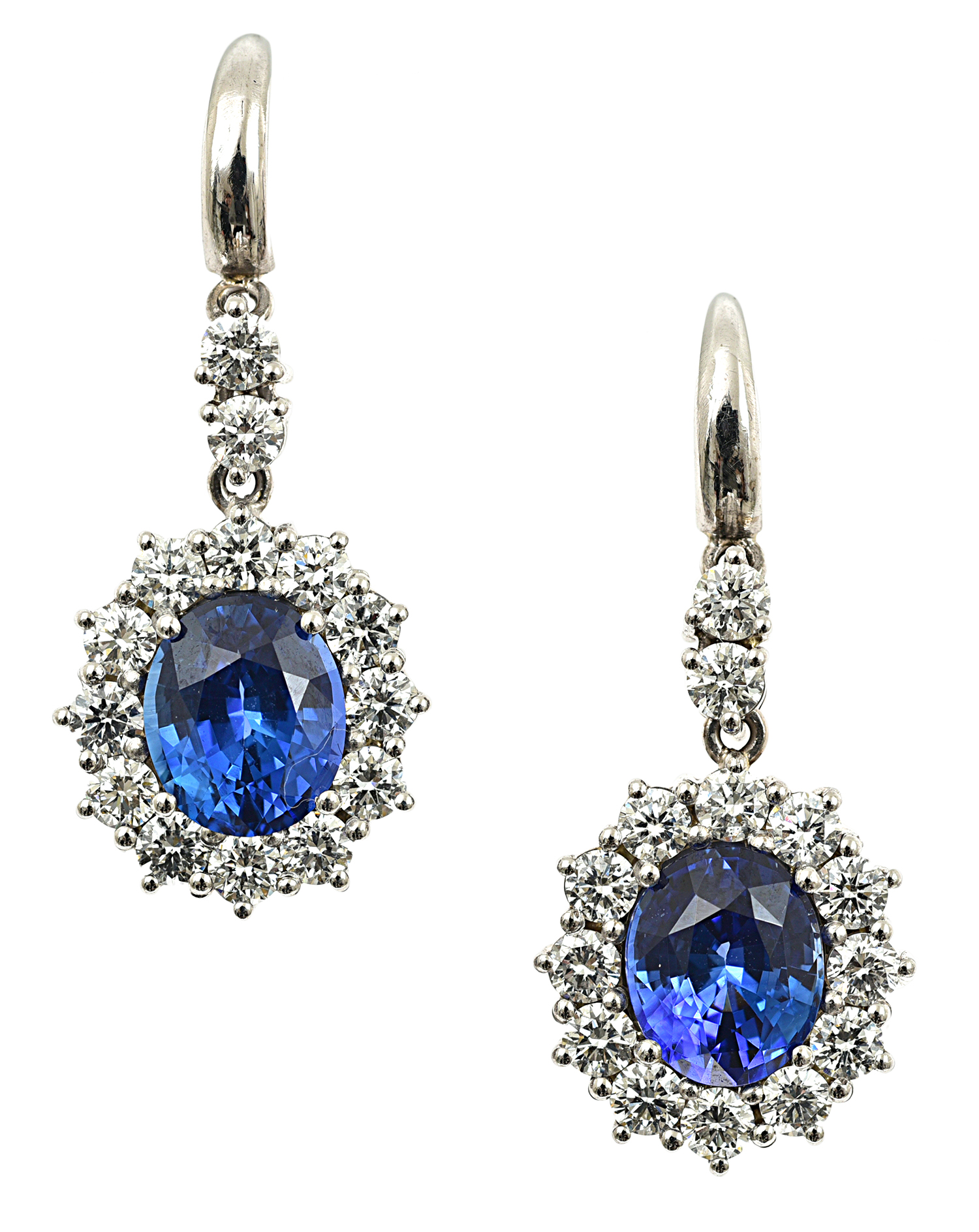 Earrings in as new condition. Sapphire is Ceylon type. Diamond colour G & Clarity SI.