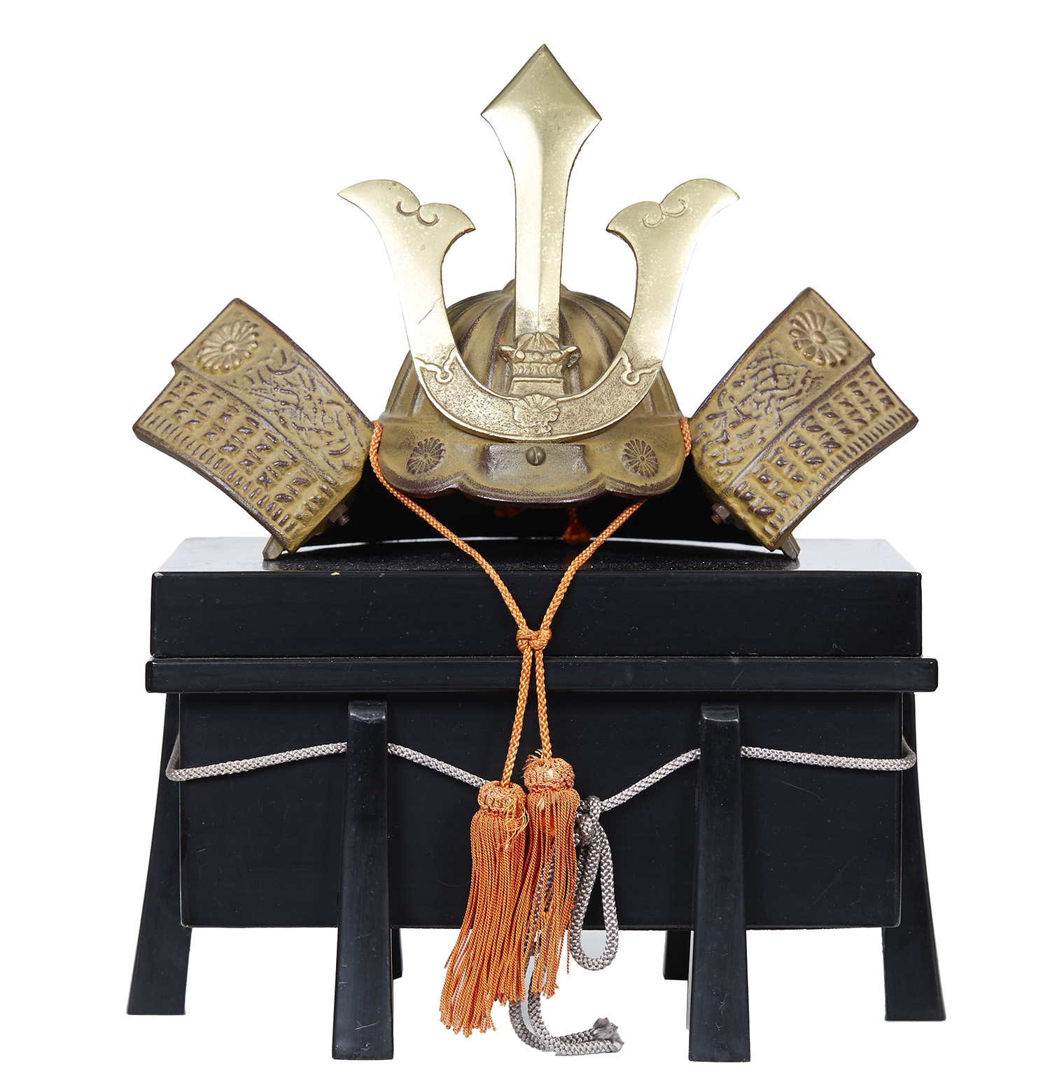 A JAPANESE 'BOYS DAY' HELMET AND BOX STAND