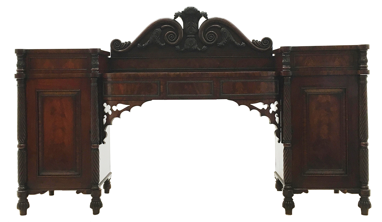 A FINE WILLIAM IV MAHOGANY TWIN PEDESTAL SIDEBOARD (location Sydney office) Enquiries phone 02 93629045