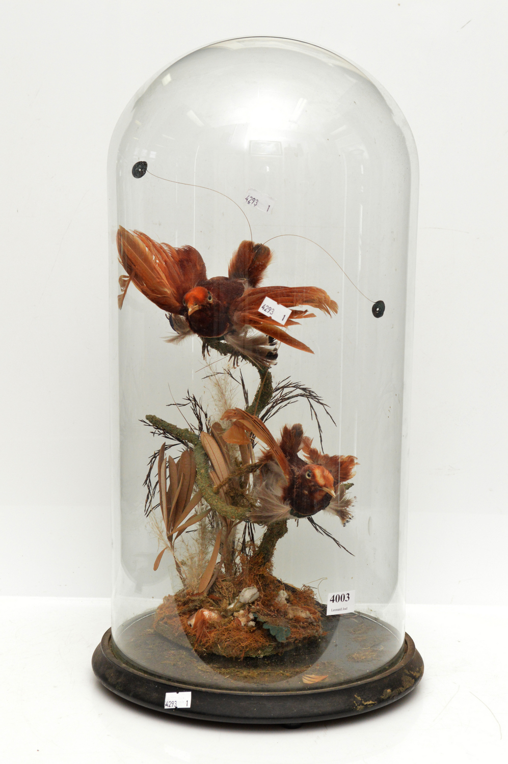 A TAXIDERMIED BIRD OF PARADISE FIGURAL GROUP, HOUSED WITHIN A VICTORIAN GLASS DOME