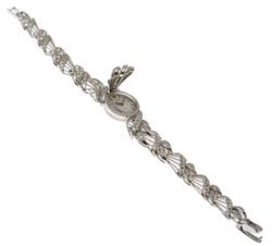 Manual wind movement, the circular cream dial with applied baton numerals, signed case, dial and movement, 18ct white gold case with hinged concealed all diamond set, finished with pierced 14ct white gold and diamond bands, 21mm diameter, total length 170mm.