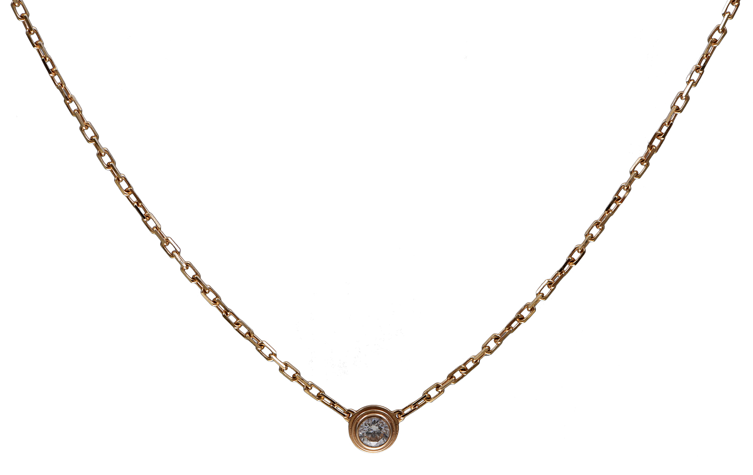From the Legers de Cartier range, featuring a round brilliant cut diamond suspended from a fine trace chain, mounted in 18ct rose gold, total length 420mm, signed, reference YD 7597, boxed.