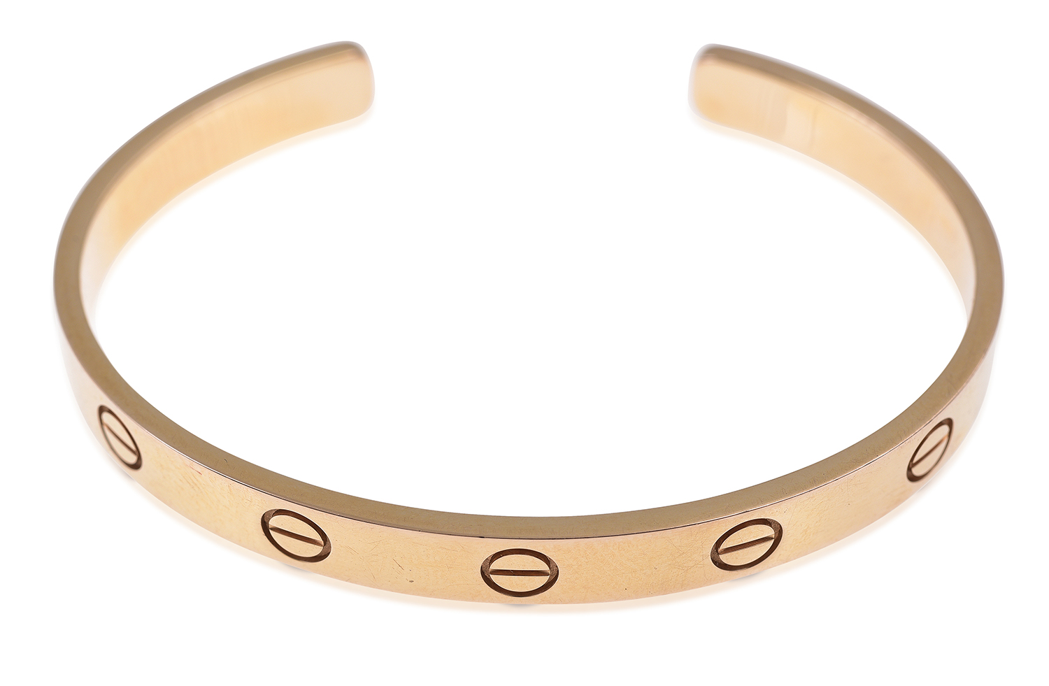 From the Love collection, the cuff modelled in 18ct yellow gold, signed, reference BUT319, boxed and with papers.