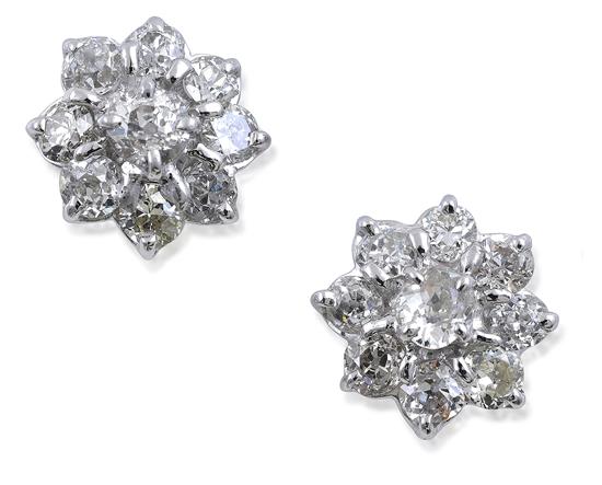 Each set with nine old European cut diamonds in a cluster formation totalling 3.05cts, mounted in 18ct white gold.