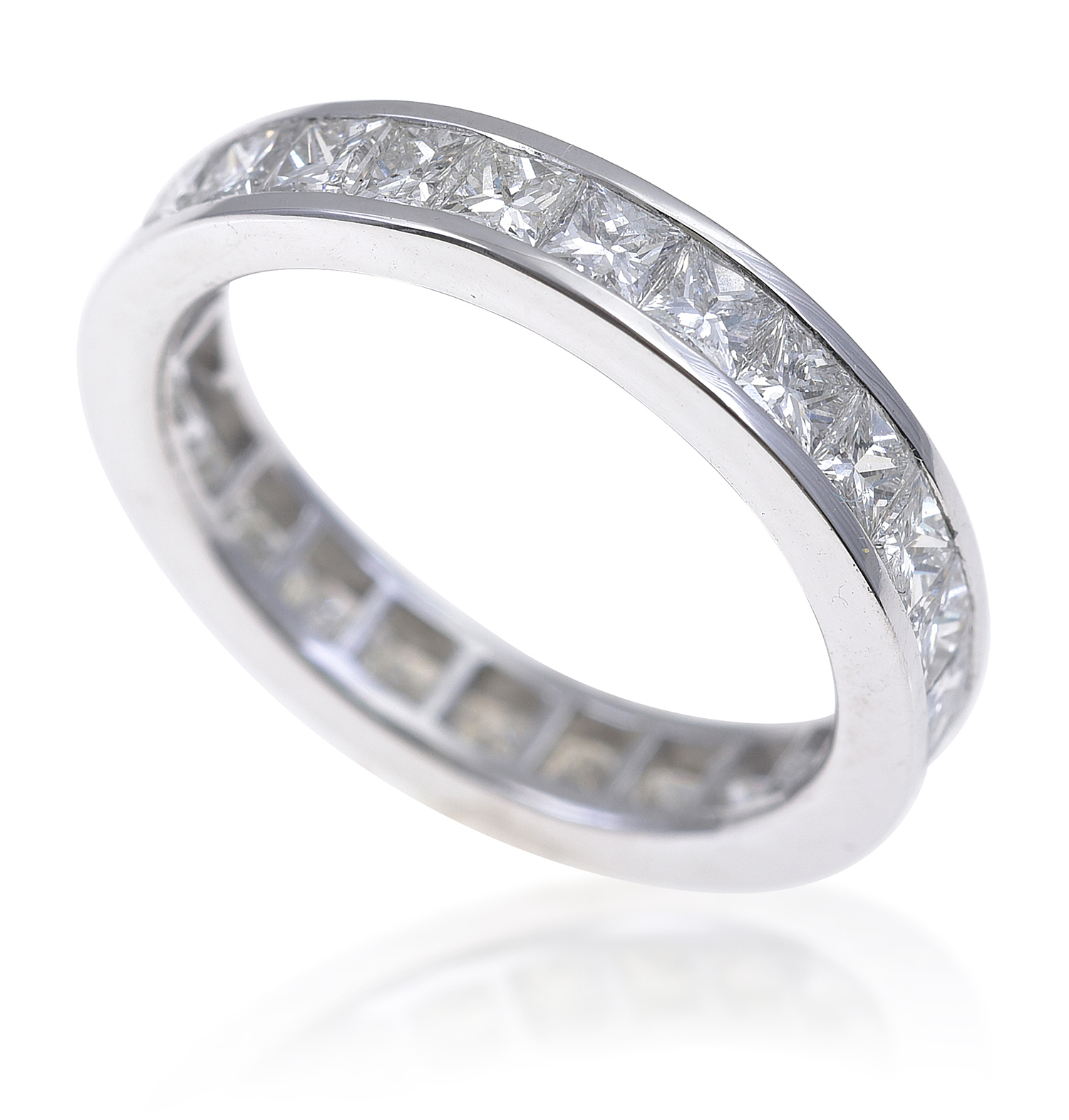 Comprising twenty two princess cut diamonds totalling 2.55cts, mounted in 18ct white gold, ring size M.
