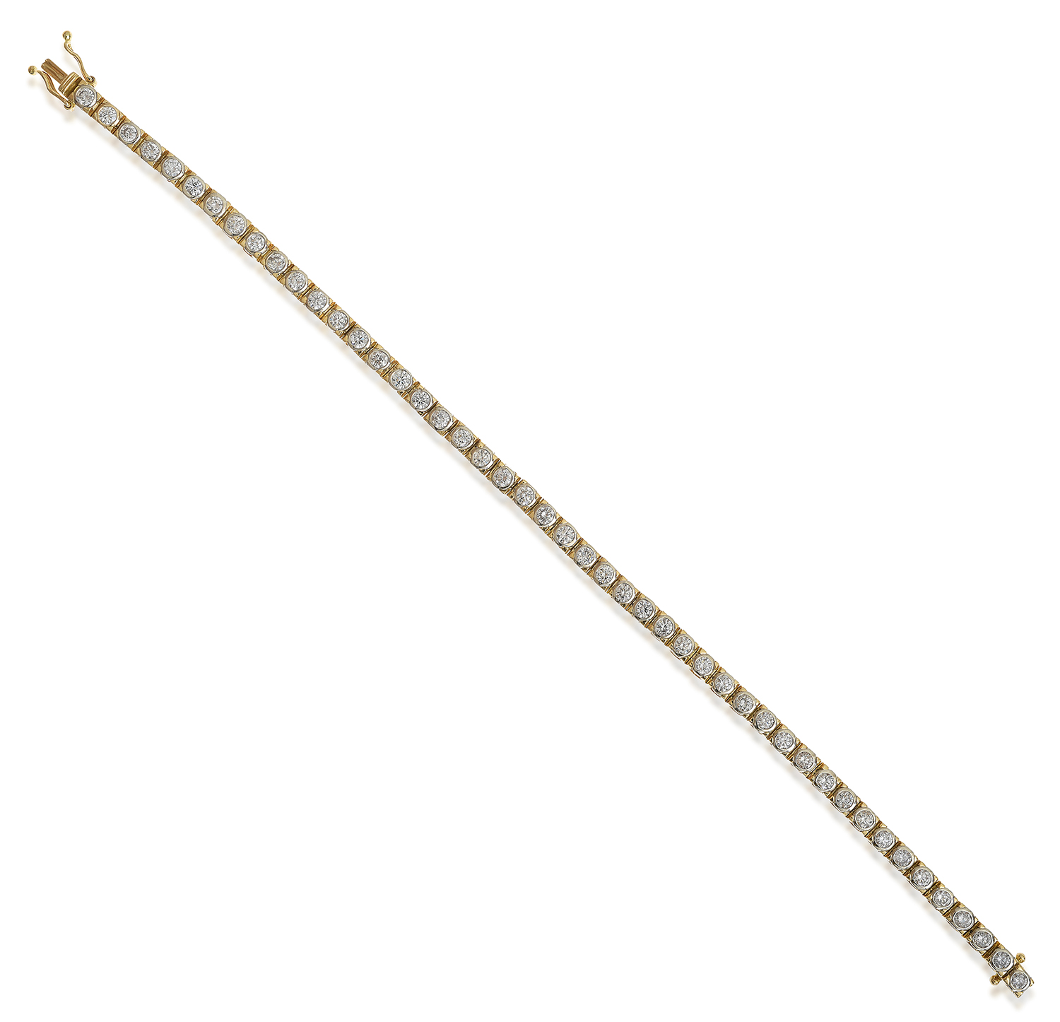 Comprising forty seven round brilliant cut diamonds totalling 4.69cts, mounted in 18ct gold, total length 185mm.