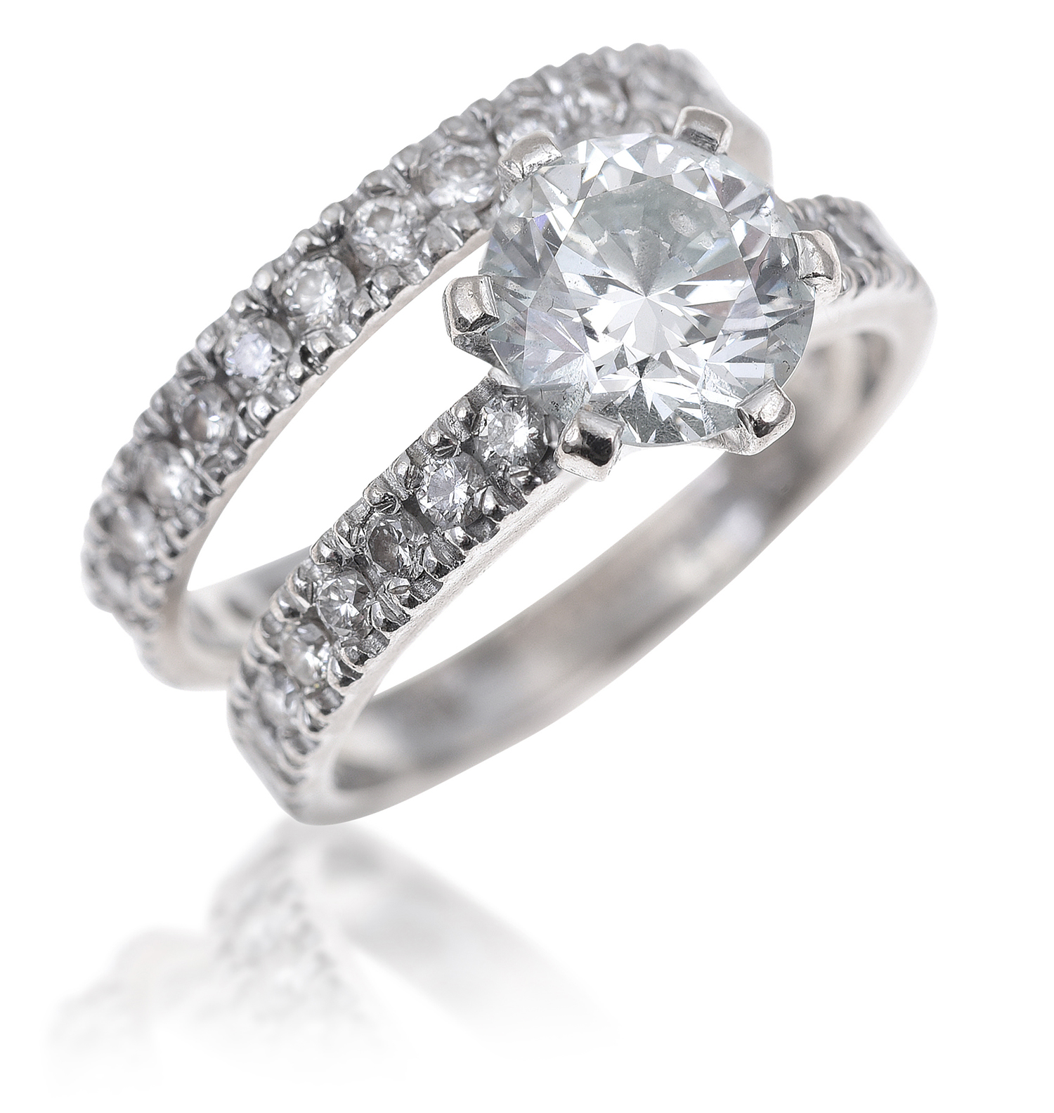The round brilliant cut diamond of 1.70cts having diamond detail set to the shoulders, with original GIA report 5106662472, colour G, clarity SI1, together with a matching full circle diamond eternity band, all mounted in 18ct white gold, ring size M.