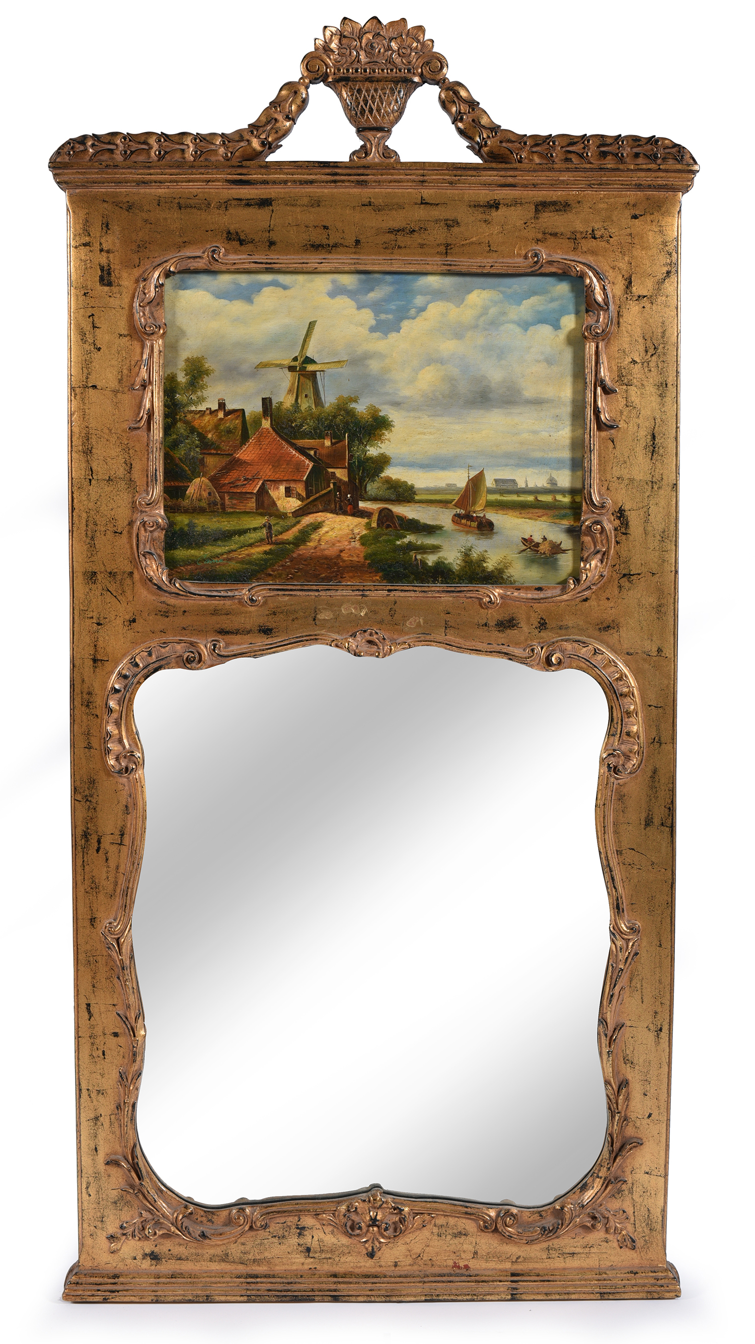 With a shaped rectangular plate, beneath a canvas panel painted with a canal scene, 185 x 90.5cm