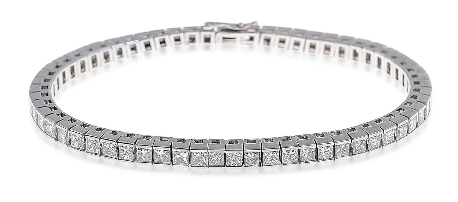 Comprising sixty one princess cut diamonds totalling 8.50cts, mounted in 18ct white gold, total length 170mm.