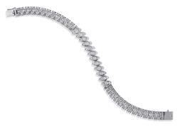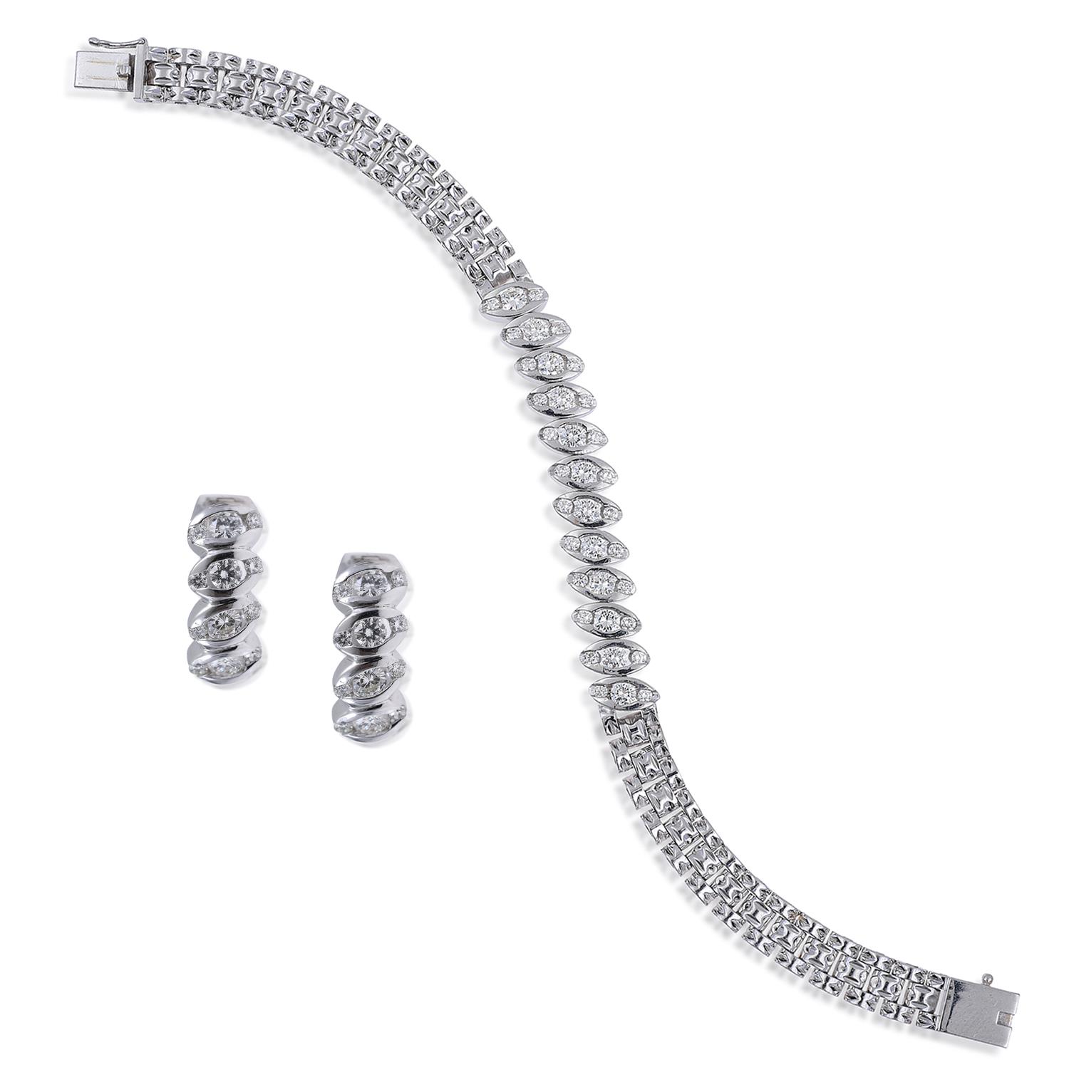 The bracelet and earrings set with oval panels each detailed with a trefoil of round brilliant cut diamonds totalling 2.65cts, all mounted in 18ct white gold, total length 180mm.