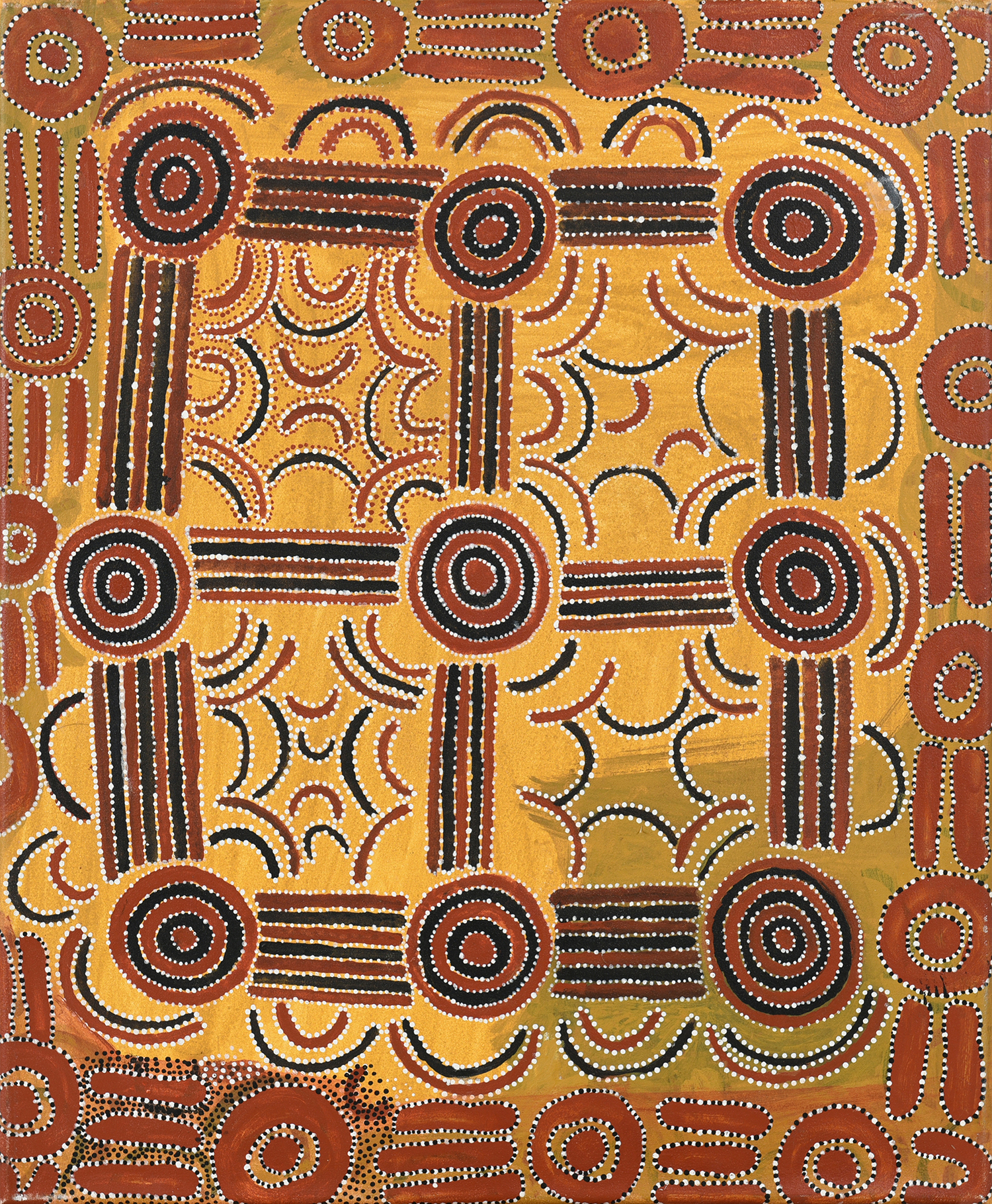JONATHAN KUMINTJARRA BROWN (1960-1997) Circular Wanigi natural earth pigments and mixed media on canvas