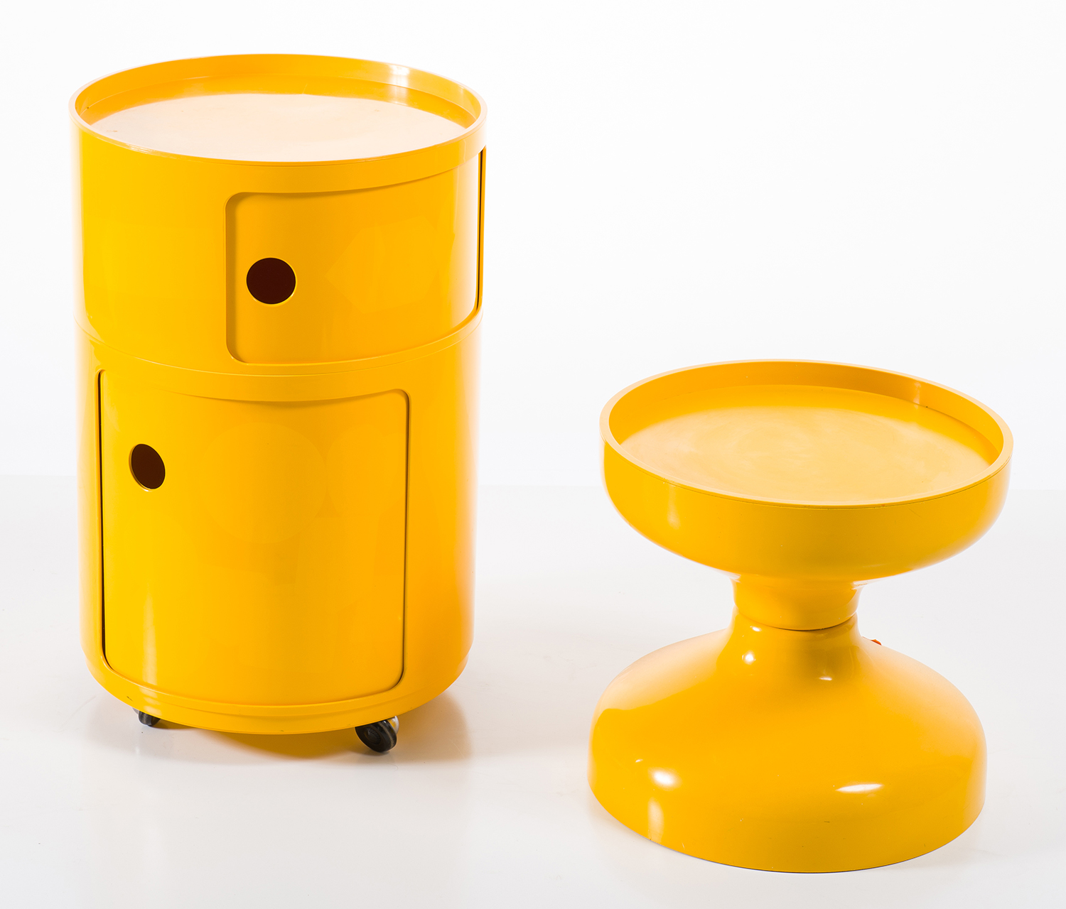 ANNA CASTELLI ROUND UP CABINET FOR KARTELL & 'ROCHETTO' SIDE TABLE BY ACHILLE CASTIGLIONI & PIERE GIACOMO