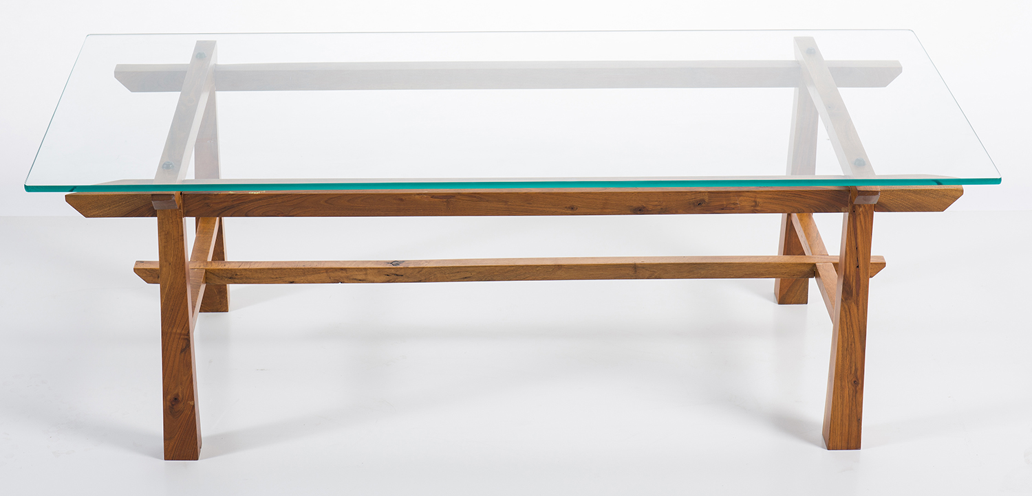 MID CENTURY COFFEE TABLE WITH GLASS TOP