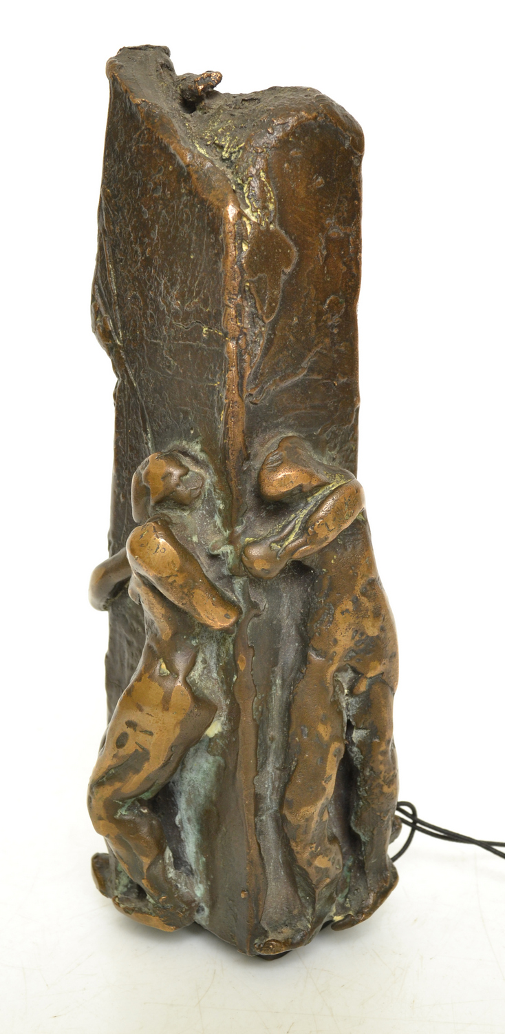 A MODERNIST BRONZE OF FIGURES CLUTCHING WALL