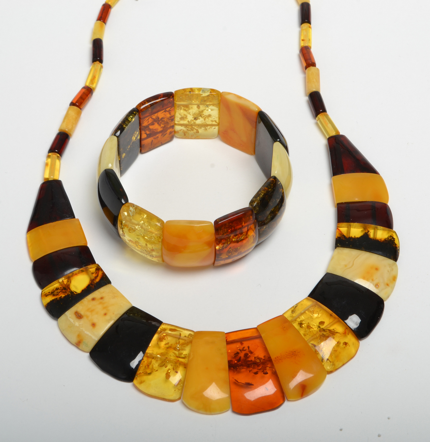 A POLISHED AMBER NECKLACE AND BRACELET