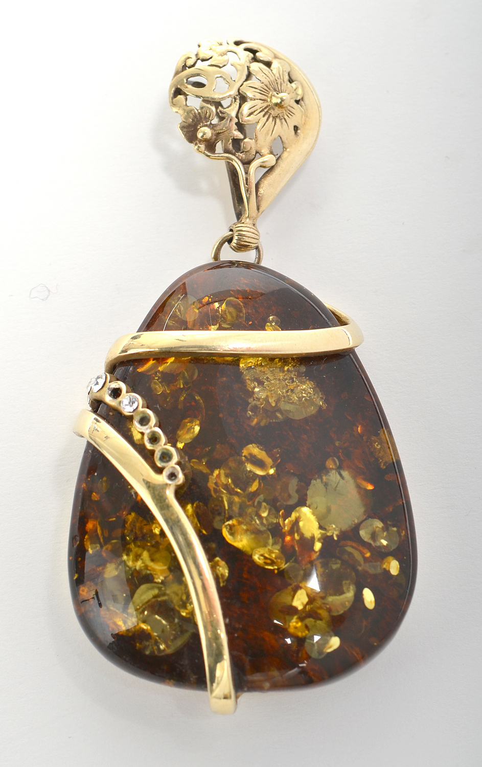 AN AMBER PENDANT SET IN 9CT GOLD - AF