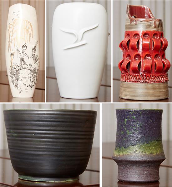 Comprising; Shorter vase, Rosenthal vase and three studio pottery vases (7), two not pictured