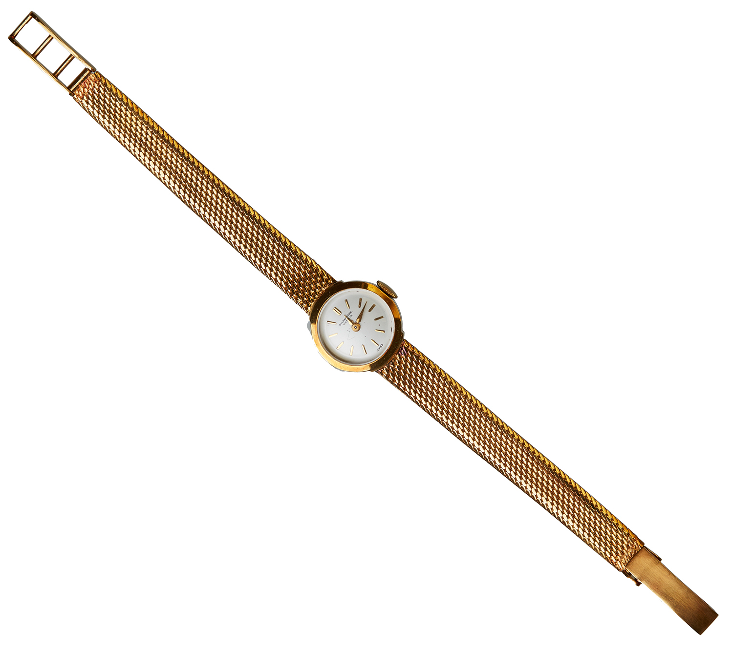 Manual wind movement, circular silvered dial with baton numerals, signed case, dial and movement, 18ct gold case with conforming bracelet bands, total length 130mm, 15 diameter, with original box.