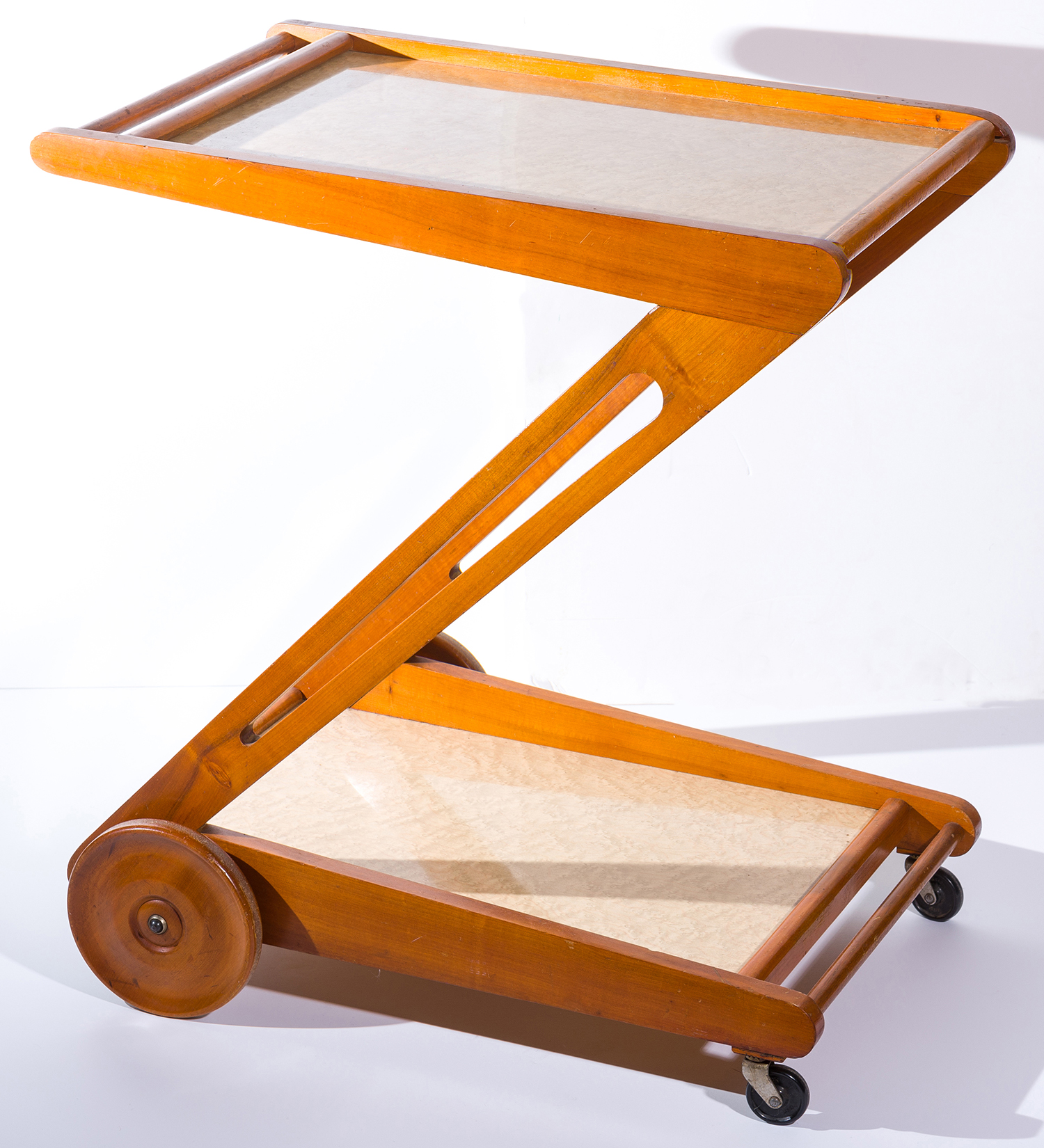 The trolley is in very good condition. There are no repairs to the wood, however, it is a little wobbly structurally. Some minor surface scratches to the top tray.
