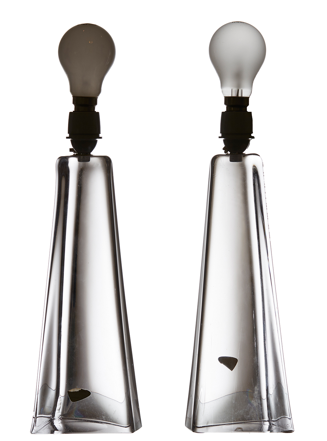 Each of abstract elongated triangular form, with original labels & signed, base 29cm high
