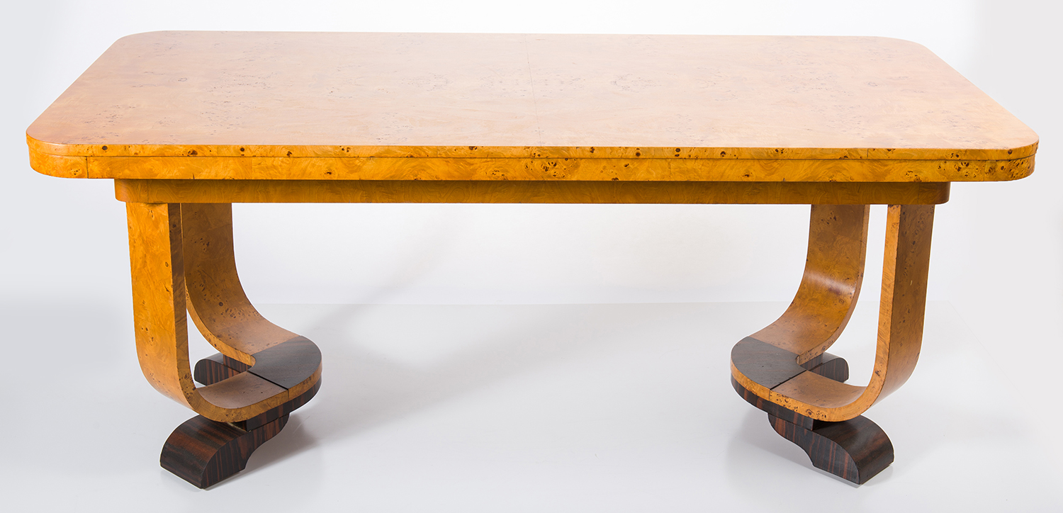 ART DECO TABLE AND SIX CHAIRS