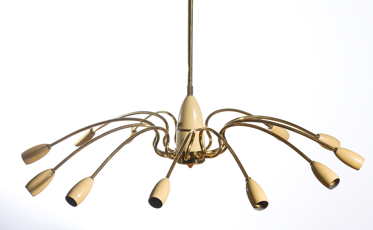 STILNOVO BRASS AND SPUN METAL TWELVE BRANCH CEILING LIGHT