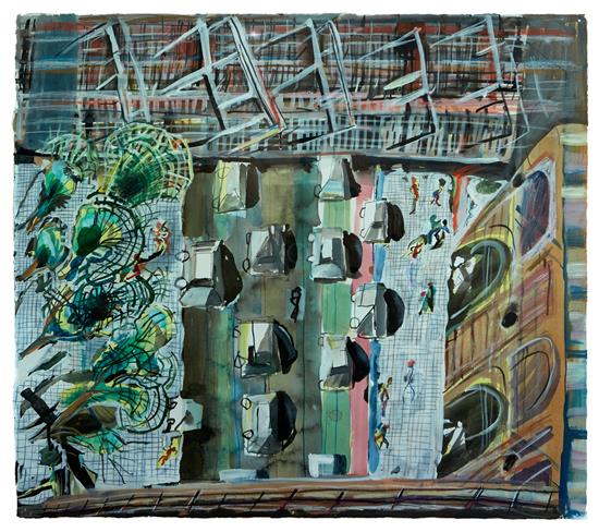watercolour, ink, colour pencil, graphite and gouache on paper