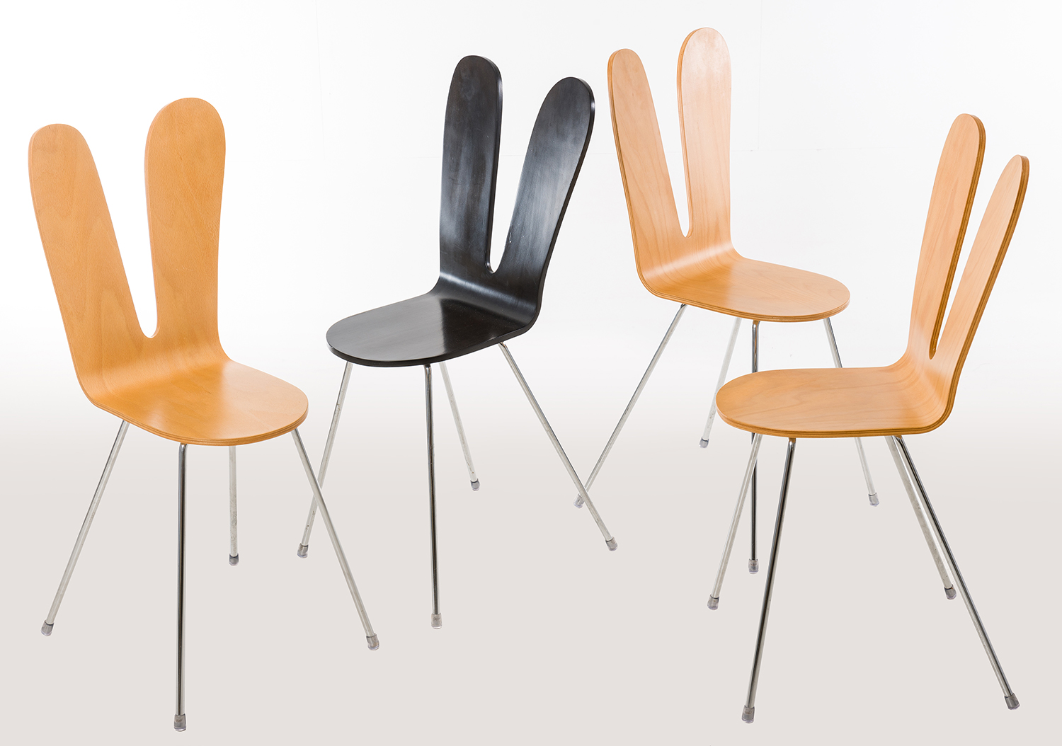 Three in natural beech, one in black.