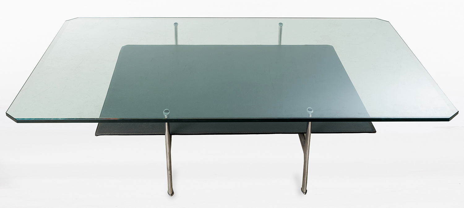 This item is in excellent condition. The table is structurally sound. There are minor surface scratches to the glass, consistent with age and use.
