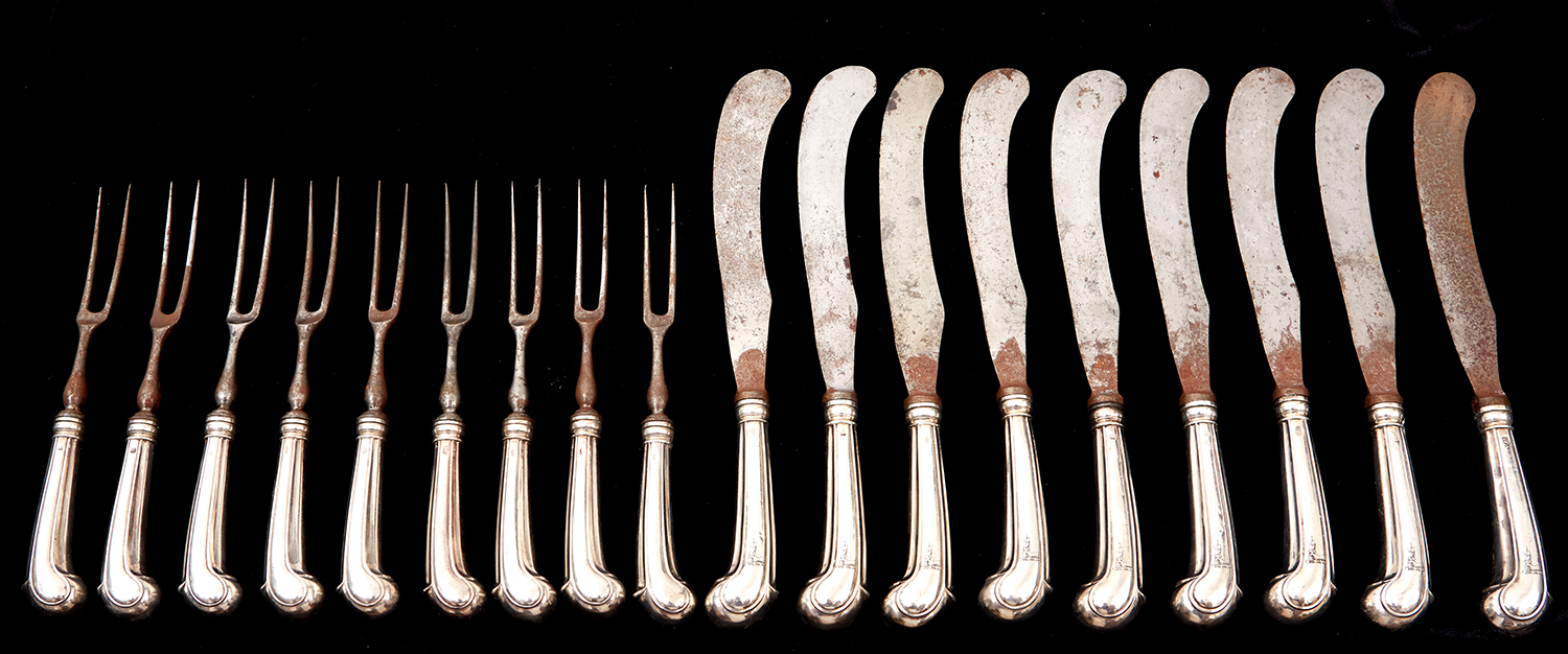 A RARE GEORGE II STERLING SILVER PISTOL GRIP FLATWARE SERVICE, 1750 AND LATER