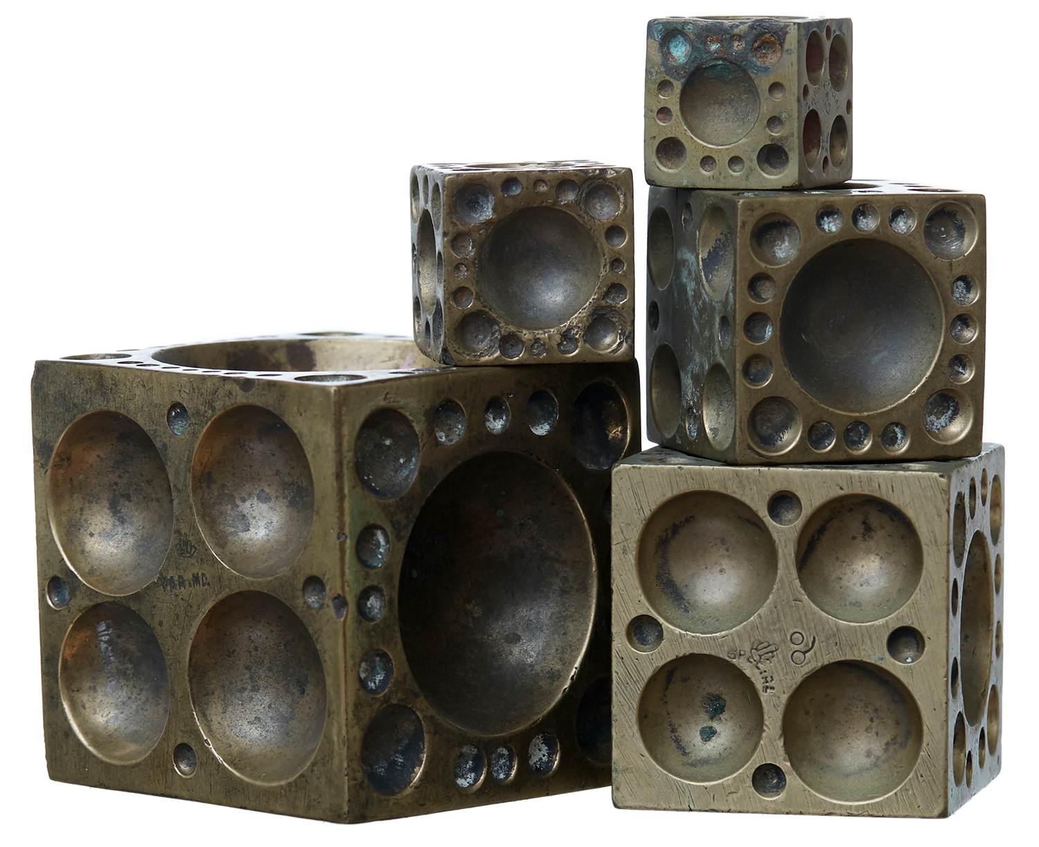 A SET OF FIVE BRONZE GRADUATED JEWELLERS BLOCKS BY "YARD.MD", CIRCA 1960