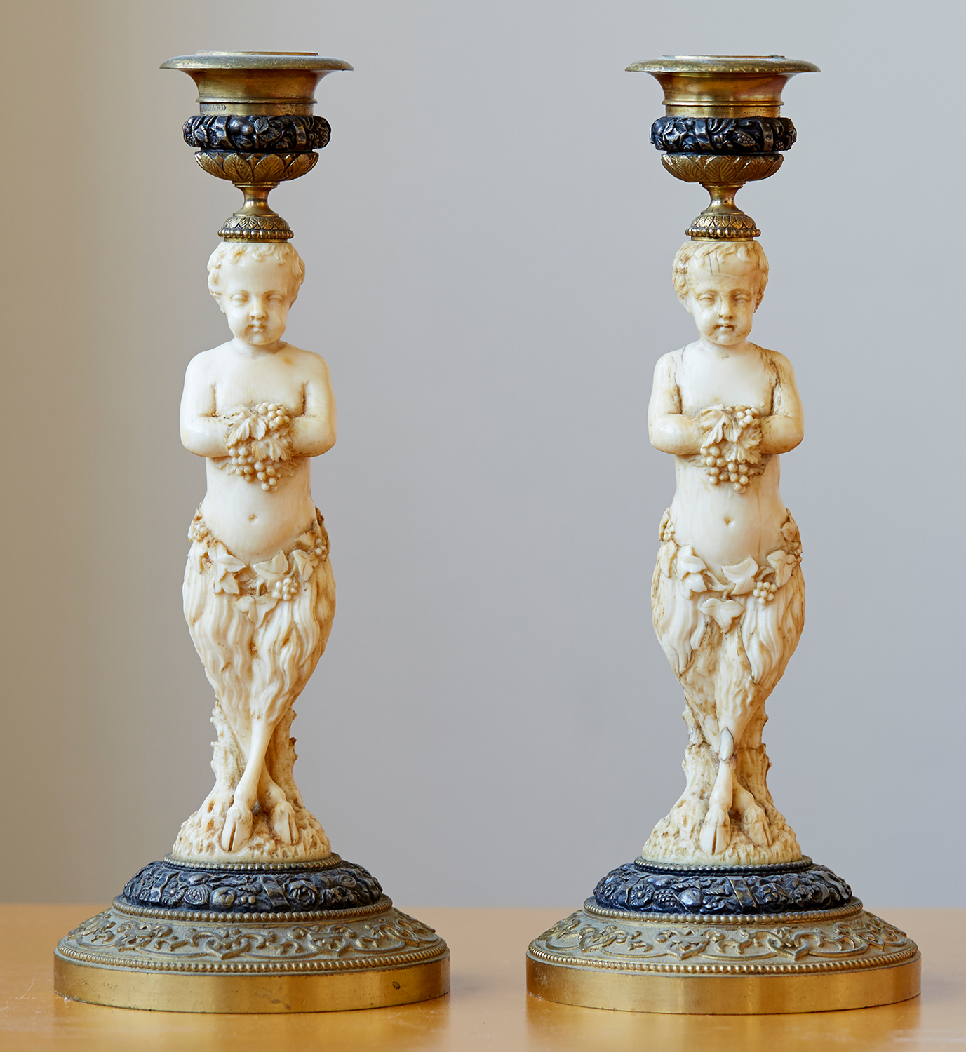 Modelled as fawn holding grapes, signed T.Blard, 21.5cm high