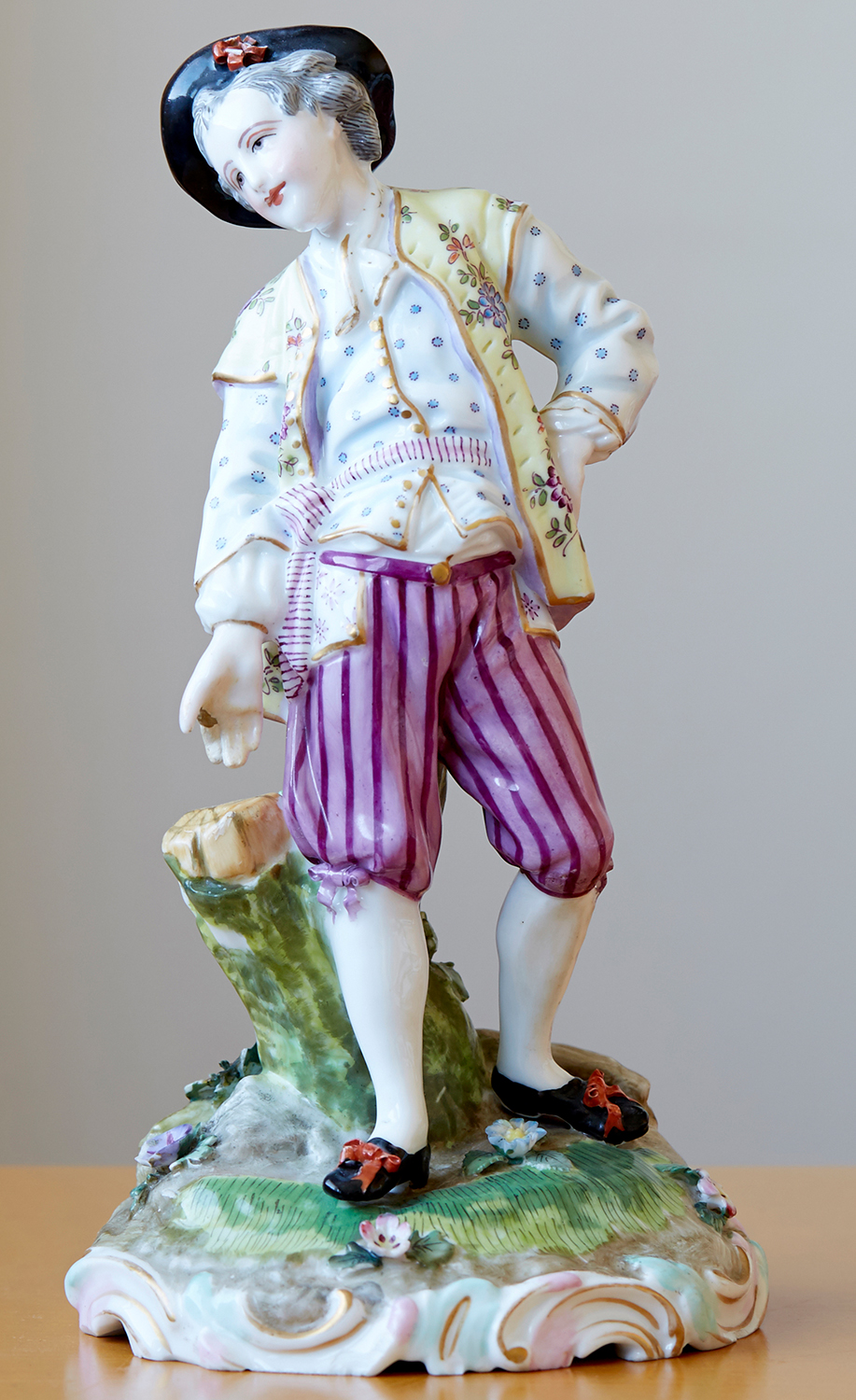 Polychrome painted, star beneath crossed sword mark, 25cm high