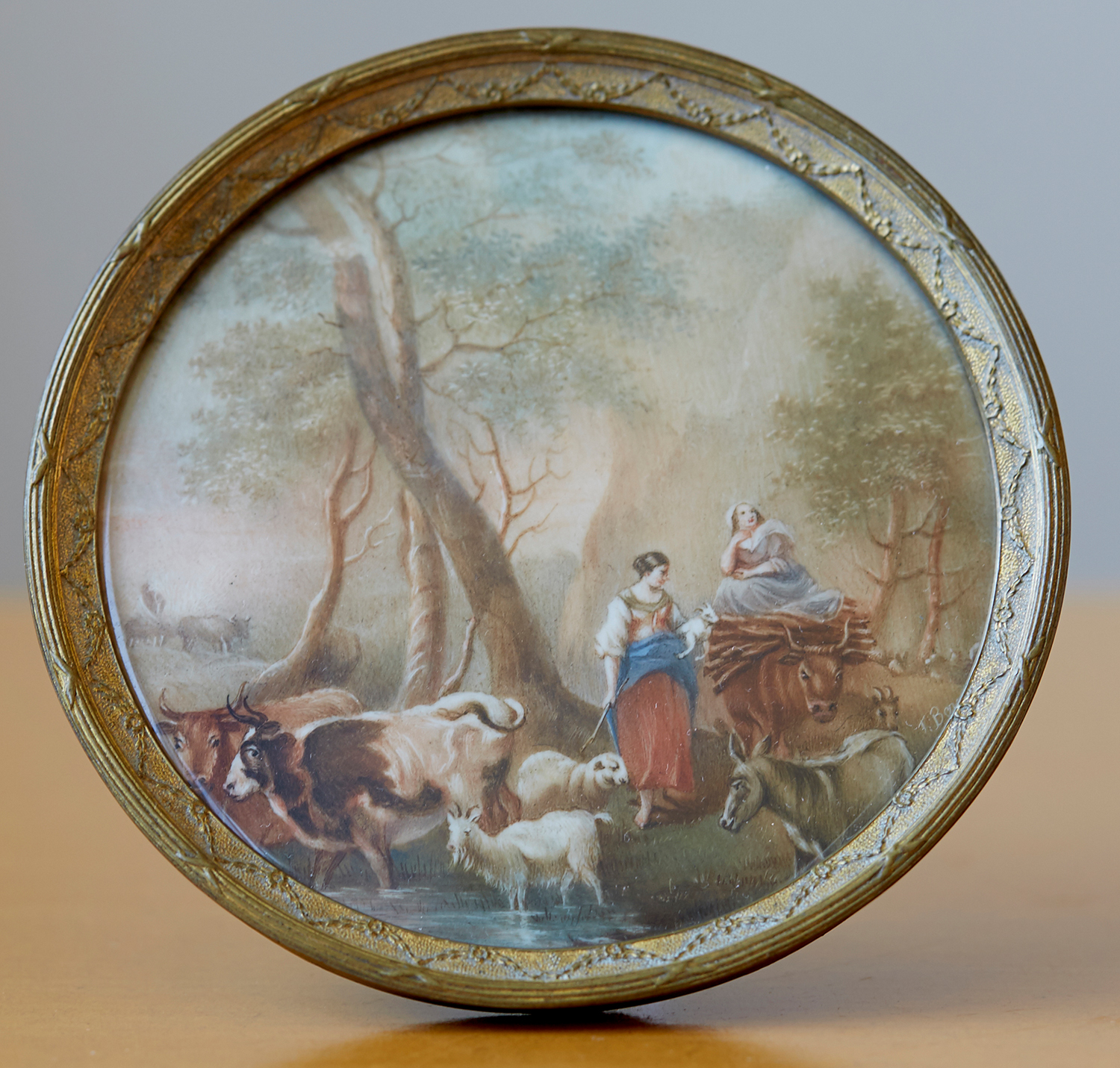AN EARLY 19TH CENTURY MINIATURE PASTORAL SCENE, SIGNED J.BEZOY 1819