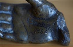 Of classical form on onyx scroll base, together with bronze hand sculpture, signed (3), 15.5cm high