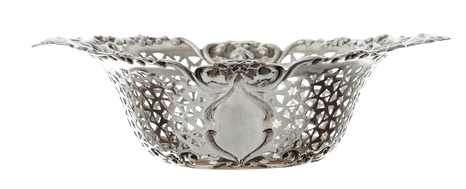 STERLING SILVER PIERCED BASKET BY WALKER & HALL, SHEFFIELD 1902