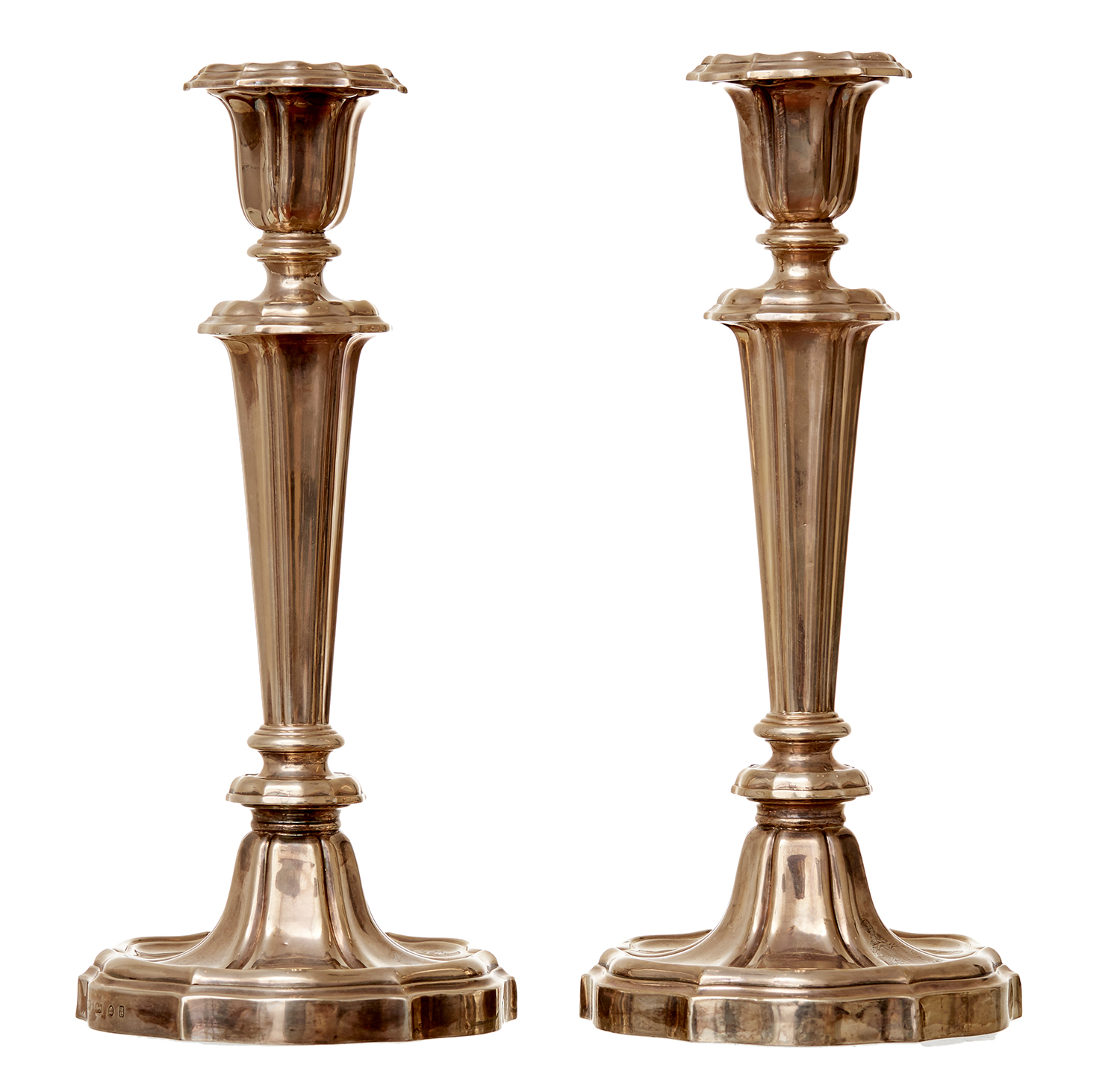 The tappered stem on stepped shaped circular crested base, weighted, 29.5cm high