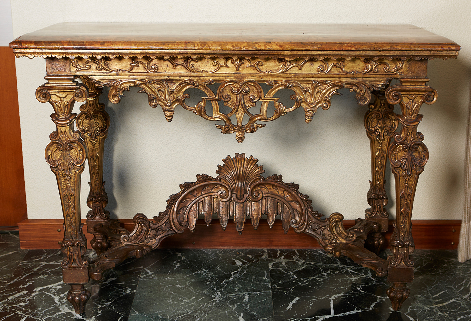 Mostly in good stable condition, the top with old split that has been stabilised from beneath, old restoration to part of stretcher base, visible in images provided.