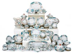 Comprising 257 pieces with an extensive selection of extras including; rare commissioned tureens, serving dishes of various sizes & others, together with a matching custom made set of Irish linen, hand cut and embroidered with coronet by the Nuns of Madeira. Please request a condition report for a full inventory of pieces.