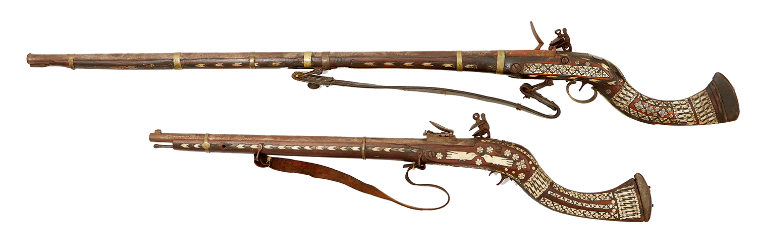 TWO AFGHAN BONE INLAID JESAIL, 19TH CENTURY