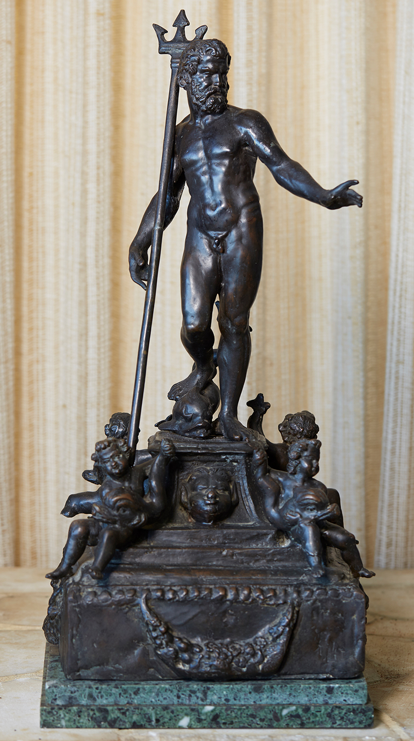 19TH CENTURY ITALIAN BRONZE GROUP, AFTER THE GIAMBOLOGNA NEPTUNE FOUNTAIN IN THE PIAZZA NETTUNO BOLOGNA