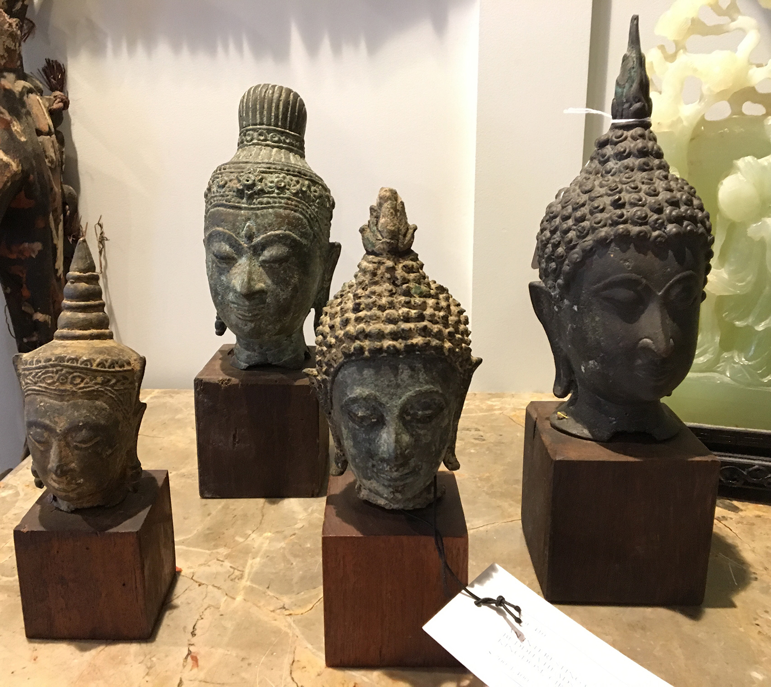 AN INTERESTING GROUP OF THAI BRONZE BUDDHA HEADS, SOME SUKHOTHAI KINGDOM, CIRCA 14TH/15TH CENTURY AND LATER