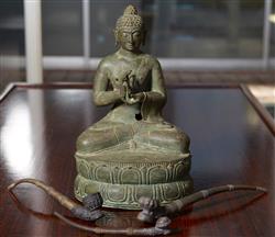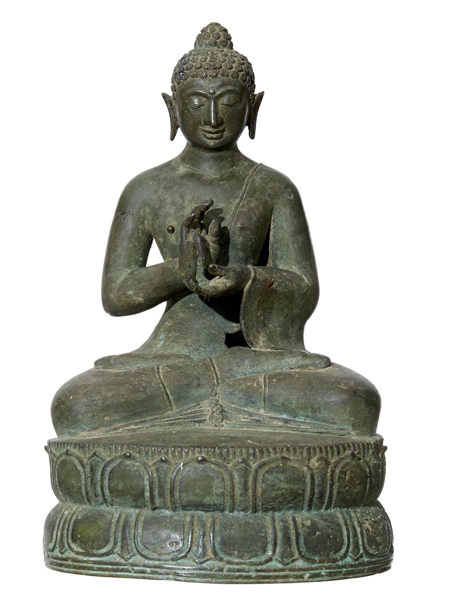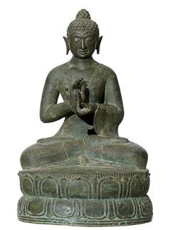 A BRONZE BUDDHA, POSSIBLY JAVA INDONESIA 13TH CENTURY