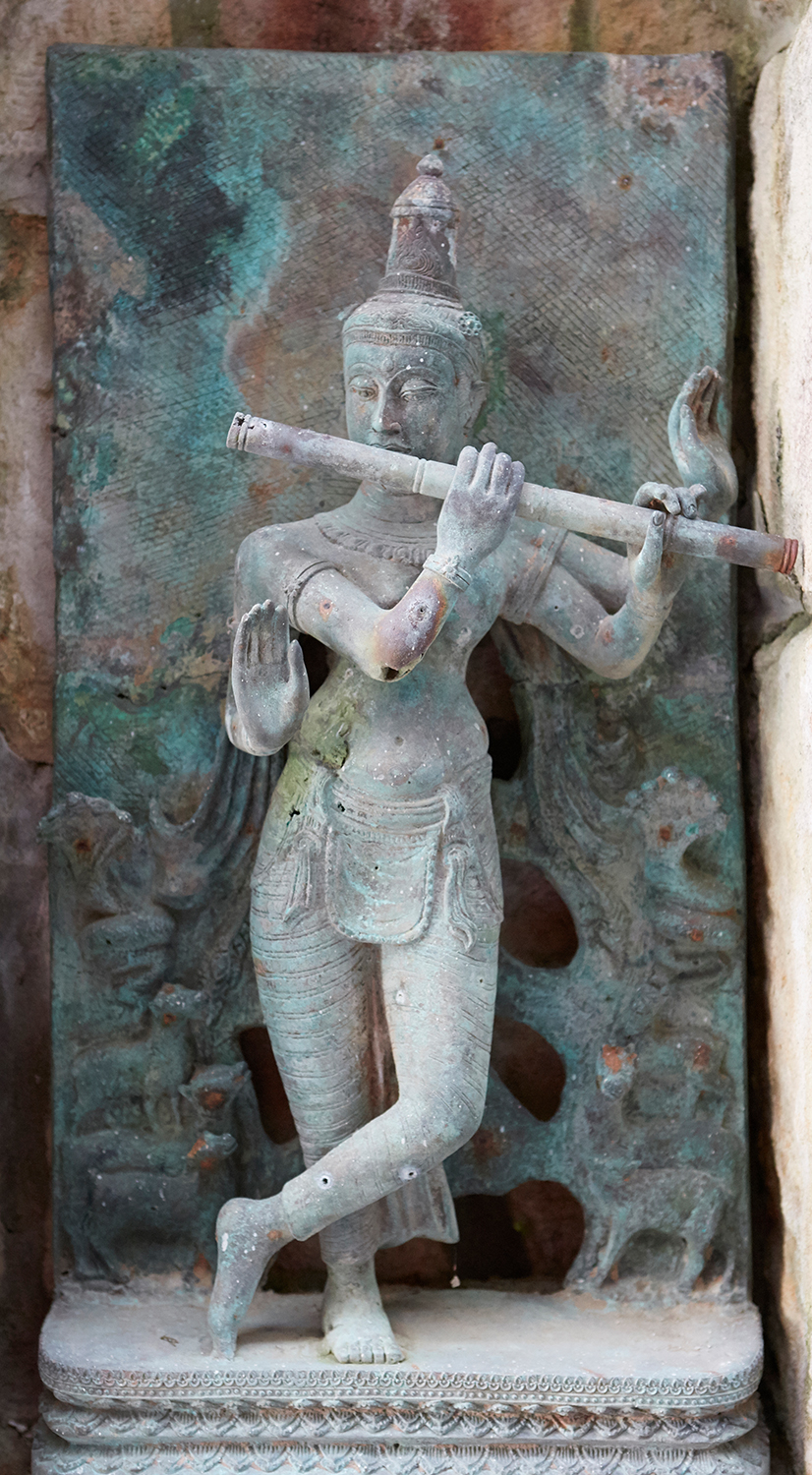 A SOUTH EAST ASIAN BRONZE ALLOY GROUP FIGURE OF KRISHNA PLAYING THE FLUTE, THAI FIRST HALF OF THE 20TH CENTURY