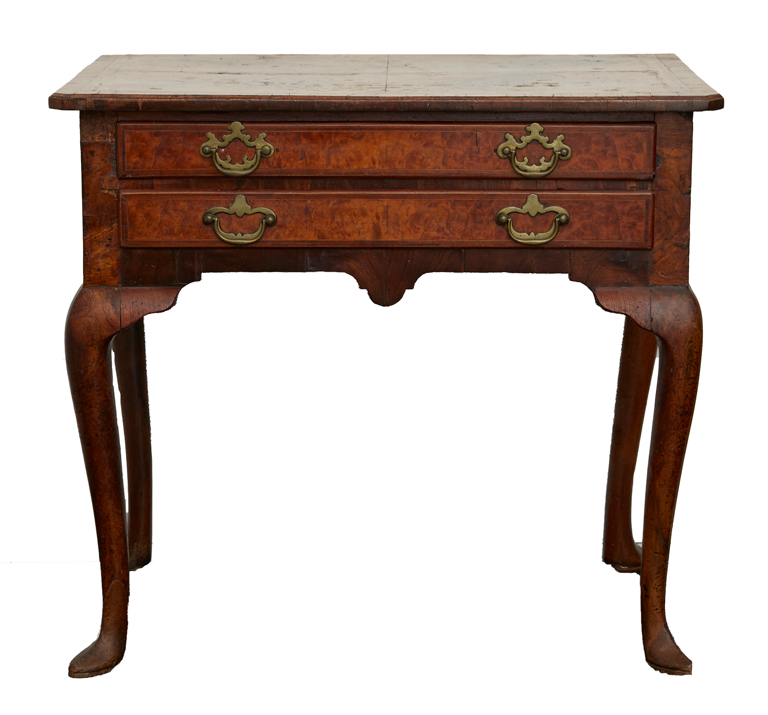 With crossbanded veneer, drawer and cabriole leg with pad foot, 76 width x 47 depth x 70cm height, Provenance with David Jones Gallery according to label in drawer